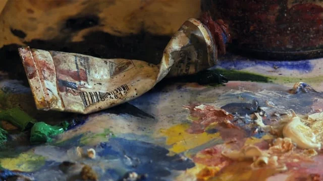 Margaret Olley: A Life in Paint contains rare footage of Olley using her very distinctive painting process - with a board on her lap. She first chalks in a picture, then paints over in acrylic before using oil paint in the final step.